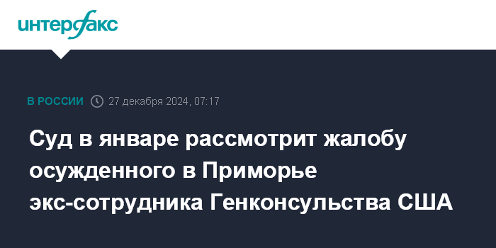 Суд в январе рассмотрит жалобу осужденного в Приморье экс-сотрудника Генконсульства США