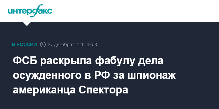 ФСБ раскрыла фабулу дела осужденного в РФ за шпионаж американца Спектора