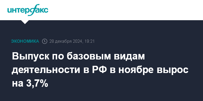 Выпуск по базовым видам деятельности в РФ в ноябре вырос на 3,7%