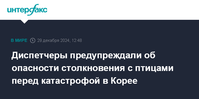 Диспетчеры предупреждали об опасности столкновения с птицами перед катастрофой в Корее