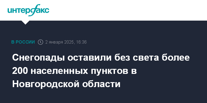 Москва. 2 января. INTERFAX.RU - Около 4,5 тыс. жителей Новгородской области остались без электричества из-за обрывов ЛЭП, связанных с налипанием на провода мокрого снега, сообщило в четверг региональное министерство ЖКХ и ТЭК.