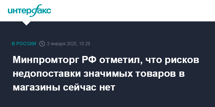 Минпромторг РФ отметил, что рисков недопоставки значимых товаров в магазины сейчас нет