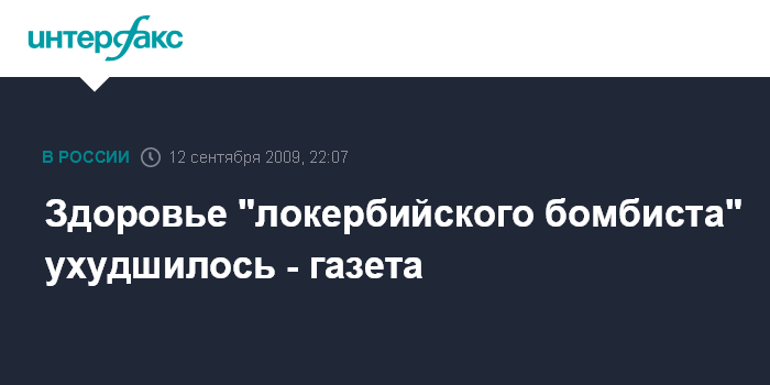 Лондон. 12 сентября. ИНТЕРФАКС - Состояние здоровья Абдельбасета али-Меграхи, осужденного за подрыв пассажирского "Боинга" в шотландском местечке Локерби, когда погибли 270 человек, и отпущенного на родину в Ливию, в субботу резко ухудшилось.