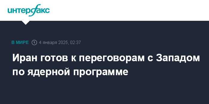 Москва. 4 января. INTERFAX.RU - Иран по-прежнему готов без промедления возобновить с Западом конструктивный переговорный процесс по достижению соглашения по своей ядерной программе, заявил иранский министр иностранных дел Аббас Аракчи.