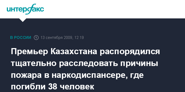 Премьер Казахстана распорядился тщательно расследовать причины пожара в наркодиспансере, где погибли 38 человек
