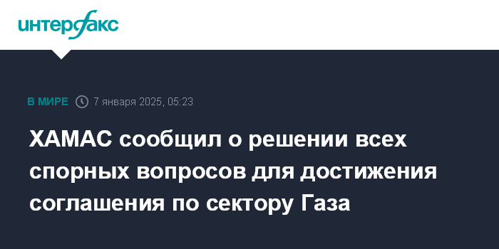 ХАМАС сообщил о решении всех спорных вопросов для достижения соглашения по сектору Газа