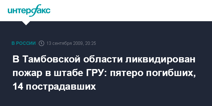 В Тамбовской области ликвидирован пожар в штабе ГРУ: пятеро погибших, 14 пострадавших
