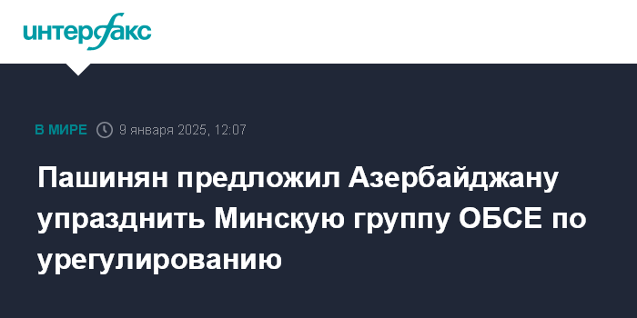 Пашинян предложил Азербайджану упразднить Минскую группу ОБСЕ по урегулированию