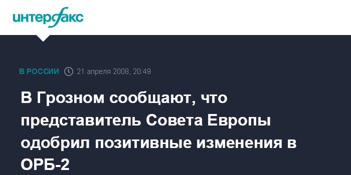 В Грозном сообщают, что представитель Совета Европы одобрил позитивные изменения в ОРБ-2