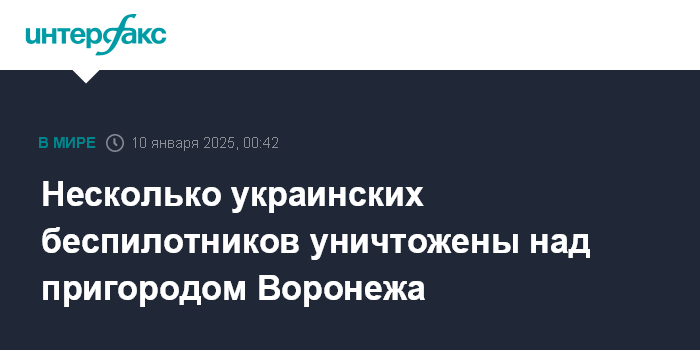 Москва. 10 января. INTERFAX.RU - Еще несколько дронов ВСУ подавлены средствами радиоэлектронной борьбы над пригородом Воронежа, сообщил в пятницу глава региона Александр Гусев.
