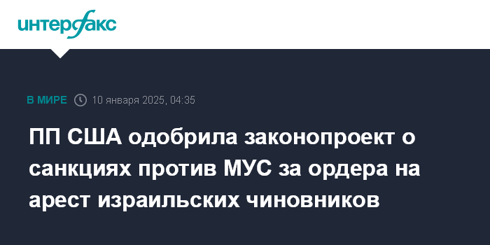 ПП США одобрила законопроект о санкциях против МУС за ордера на арест израильских чиновников