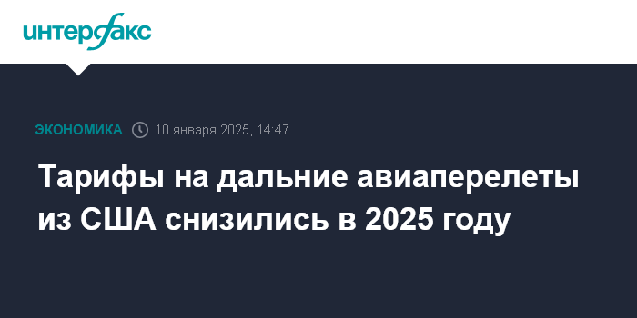 Тарифы на дальние авиаперелеты из США снизились в 2025 году