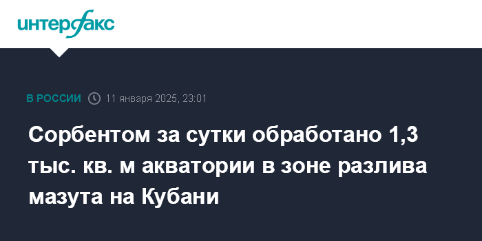 Москва. 11 января. INTERFAX.RU - Морспасслужба вывела в море 28 судов для ликвидации последствий крушения танкеров с мазутом, сообщил оперативный штаб Кубани.