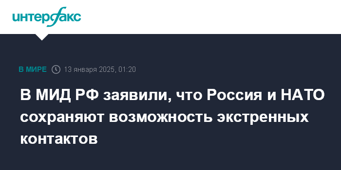 В МИД РФ заявили, что Россия и НАТО сохраняют возможность экстренных контактов
