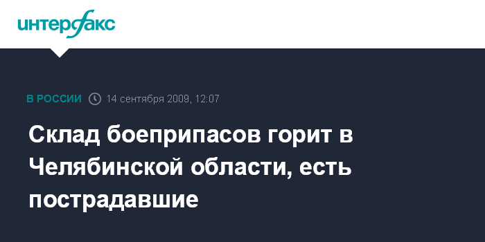 Москва. 14 сентября. INTERFAX.RU - В городе Карабаш Челябинской области в понедельник около 12:00 по местному времени в военной части загорелся один из складов боеприпасов, в результате три человека пострадали. Как сообщил агентству "Интерфакс-Урал" первый заместитель губернатора Челябинской области Владимир Дятлов, из-за пожара боеприпасы начали взрываться. "Пожар пока не локализован, поскольку к месту горения из-за взрывов подойти нельзя", - сказал он.