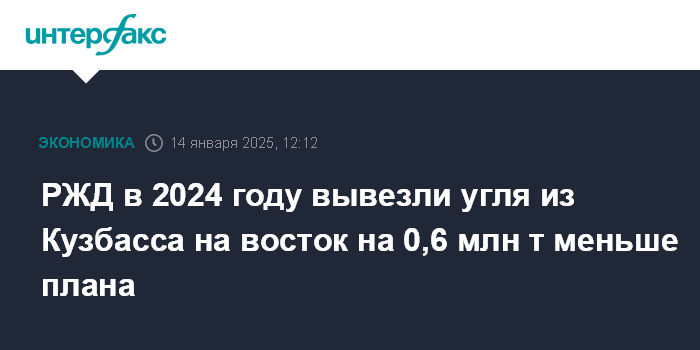 РЖД в 2024 году вывезли угля из Кузбасса на восток на 0,6 млн т меньше плана