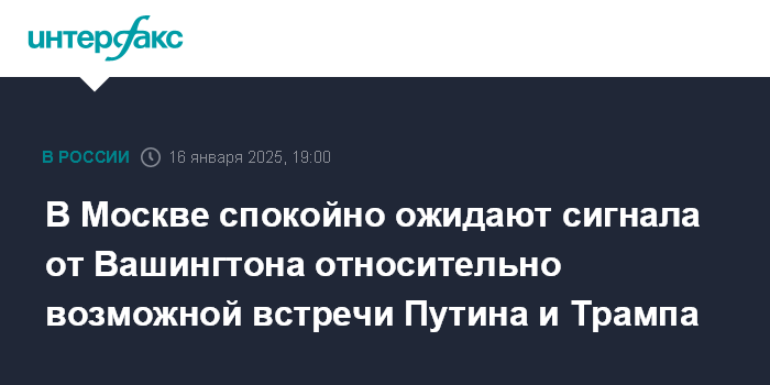 Москва. 16 января. INTERFAX.RU - Российская сторона спокойно ожидает сигнала от США относительно возможной встречи президента РФ Владимира Путина и избранного президента Соединенных Штатов Дональда Трампа, сообщил помощник главы российского государства Юрий Ушаков.