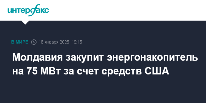 Молдавия закупит энергонакопитель на 75 МВт за счет средств США