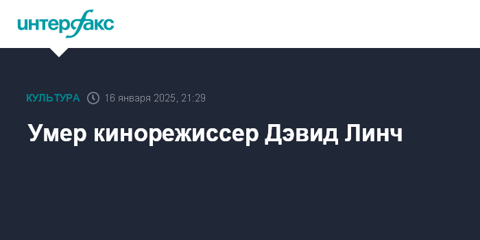 Москва. 16 января. INTERFAX.RU - Умер кинорежиссер и сценарист Дэвид Линч, сообщает Variety со ссылкой на сообщение его семьи в соцсети. Ему было 78 лет.