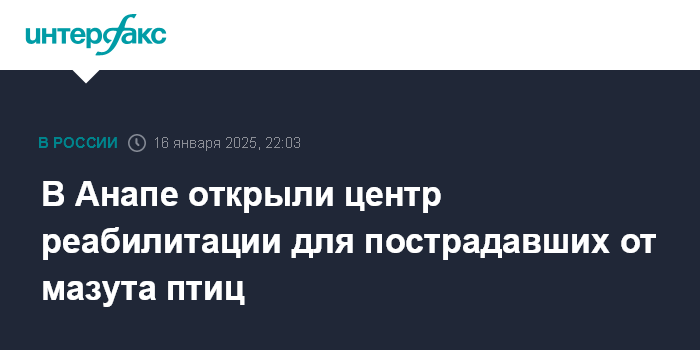 Москва. 16 января. INTERFAX.RU - В Анапе на площади почти в 800 квадратных метров открыли реабилитационный центр для пернатых, которые пострадали после разлива мазута в Черном море, сообщил оперштаб Краснодарского края.