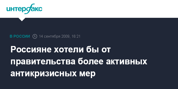 Москва. 14 сентября. INTERFAX.RU - Исследование, проведенное по заказу Би-би-си, показало, что большинство россиян хотят более активной роли государства в вопросе поддержки национальной экономики в условиях экономического кризиса. В частности, согласно результатам опроса (проводился в 20 странах, в том числе в России - ИФ), опубликованным на сайте BBC в понедельник, за это выступает 85% жителей России.