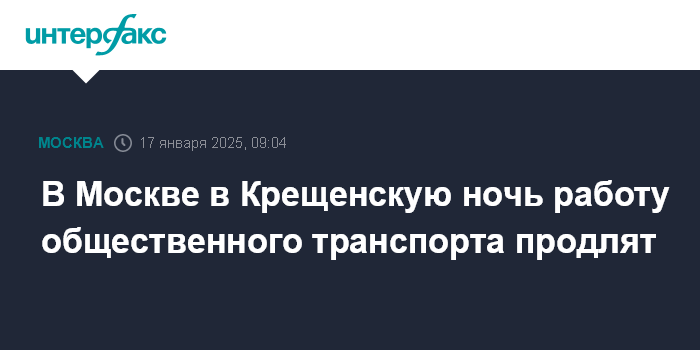 В Москве в Крещенскую ночь работу общественного транспорта продлят
