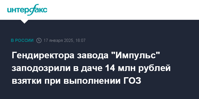 Гендиректора завода "Импульс" заподозрили в даче 14 млн рублей взятки при выполнении ГОЗ