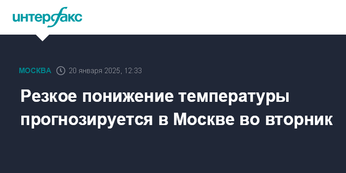 Москва. 20 января. INTERFAX.RU - Температура в Москве после оттепельных значений понизится во вторник на 10 градусов, днем столбики термометров не поднимутся выше минус 3, нормальная зимняя погода сохранится в столичном регионе в течение нескольких дней, но уже к выходным опять вернется оттепель, сообщил "Интерфаксу" научный руководитель Гидрометцентра России Роман Вильфанд.