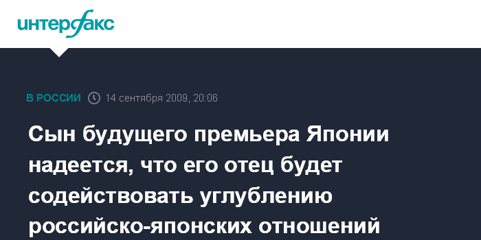 Сын будущего премьера Японии надеется, что его отец будет содействовать углублению российско-японских отношений