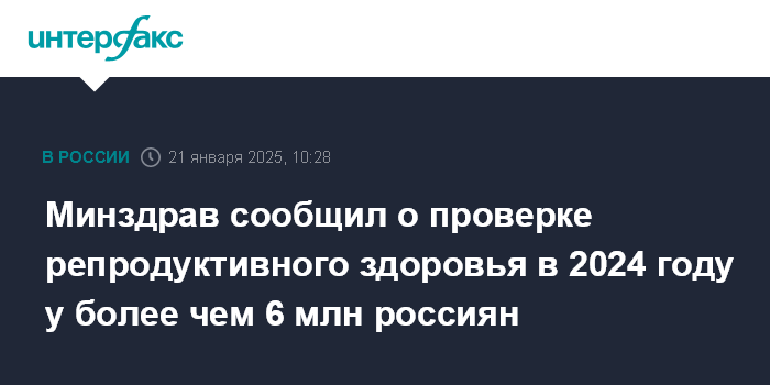 Минздрав сообщил о проверке репродуктивного здоровья в 2024 году у более чем 6 млн россиян