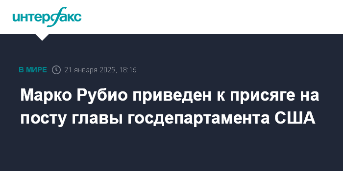 Москва. 21 января. INTERFAX.RU - Вице-президент США Джей Ди Вэнс во вторник привел к присяге госсекретаря США Марко Рубио, кандидатуру которого ранее утвердили в сенатском комитете по международным отношениям, а также полным составом сената.
