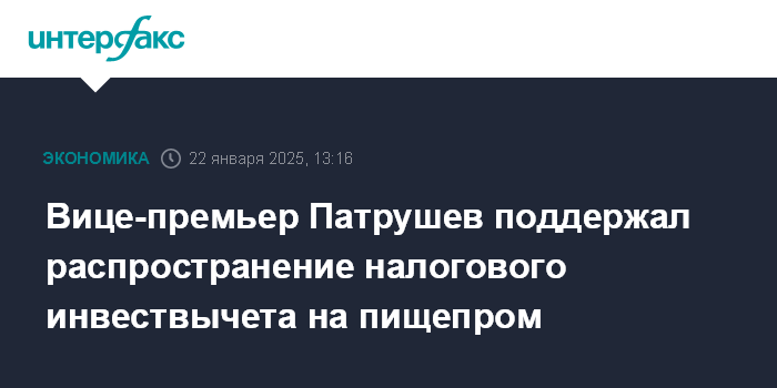 Вице-премьер Патрушев поддержал распространение налогового инвествычета на пищепром
