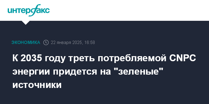 К 2035 году треть потребляемой CNPC энергии придется на "зеленые" источники
