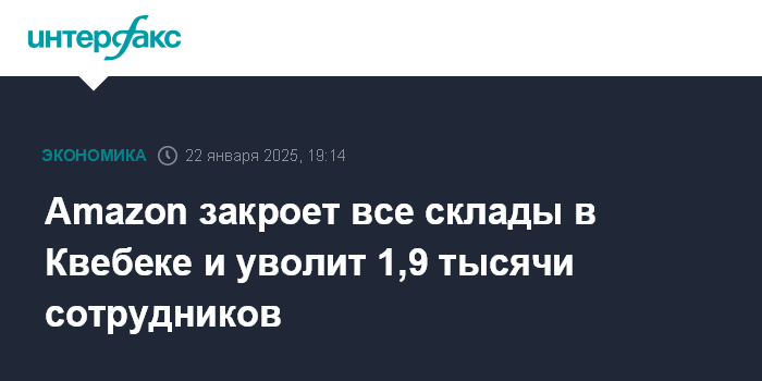 Москва. 22 января. INTERFAX.RU - Amazon.com Inc. планирует закрыть все семь складов в канадской провинции Квебек и сократить штат постоянных и временных сотрудников примерно на 1,9 тысячи человек.