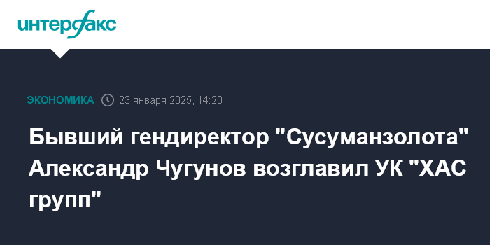 Москва. 23 января. INTERFAX.RU - Известный в золотодобывающей отрасли менеджер Александр Чугунов, согласно ЕГРЮЛ, стал гендиректором УК "ХАС групп".