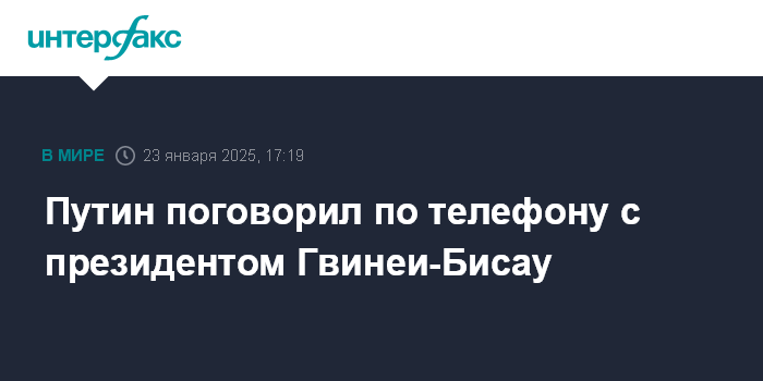 Москва. 23 января. INTERFAX.RU - Состоялся телефонный разговор президента РФ Владимира Путина с президентом Республики Гвинея-Бисау Умару Сиссоку Эмбало, сообщает пресс-служба Кремля.