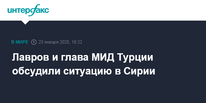 Москва. 23 января. INTERFAX.RU - Глава МИД РФ Сергей Лавров провел телефонный разговор с турецким коллегой Хаканом Фиданом, сообщили в четверг в российском министерстве.
