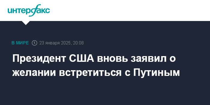 Москва. 23 января. INTERFAX.RU - Президент США Дональд Трамп в четверг, выступая в режиме видеоконференции на Всемирном экономическом форуме в Давосе, повторил, что хочет в ближайшее время провести встречу с российским коллегой Владимиром Путиным.