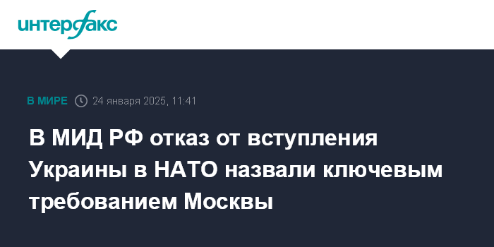 В МИД РФ отказ от вступления Украины в НАТО назвали ключевым требованием Москвы