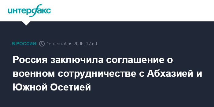 Москва. 15 сентября. INTERFAX.RU - Соглашение о военном сотрудничестве России с Абхазией и Южной Осетией, предусматривающее создание российских военных баз в этих республиках, подписано во вторник в Москве.