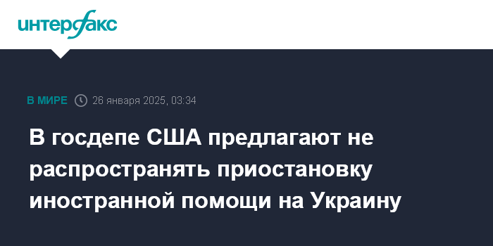 В госдепе США предлагают не распространять приостановку иностранной помощи на Украину