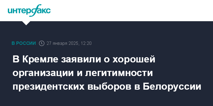 Москва. 27 января. INTERFAX.RU - Президентские выборы в Белоруссии были абсолютно легитимными, прозрачными и хорошо организованными, заявили пресс-секретарь президента России Дмитрий Песков.