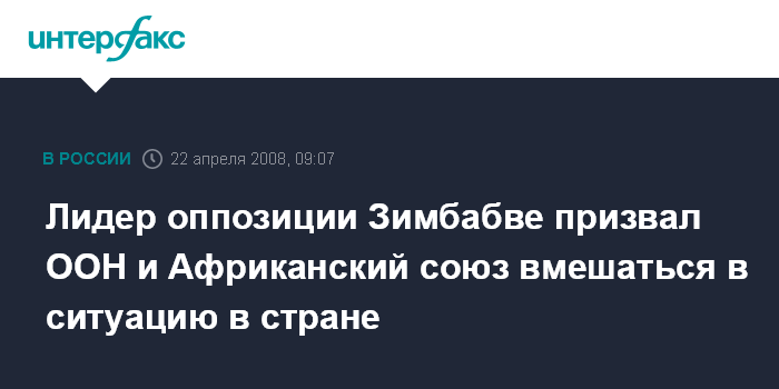 Лидер зимбабвийской оппозиции "призвал Африканский Союз и Объединенные Нации вмешаться" в сложившуюся ситуацию и попытаться разрешить кризис, говорится в заявлении.