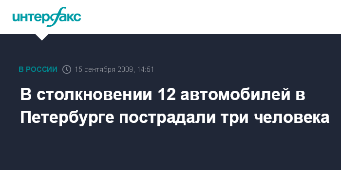 Санкт-Петербург. 15 сентября. INTERFAX.RU - На севере Петербурга во вторник днем столкнулись 12 автомобилей, сообщили "Интерфаксу" в ГУ МЧС по Северной столице.
