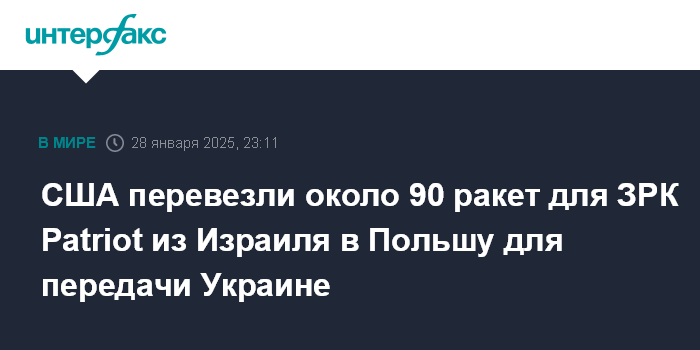 "Армия США на этой неделе перевезла в Польшу около 90 ракет-перехватчиков для Patriot, находившихся на хранении в Израиле. Далее планируется передать их Украине", - пишет портал со ссылкой на трех информированных источников.