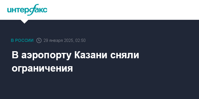Москва. 29 января. INTERFAX.RU - Ограничения на прием и выпуск воздушных судов сняты в аэропорту Казани, сообщили в Росавиации в среду.