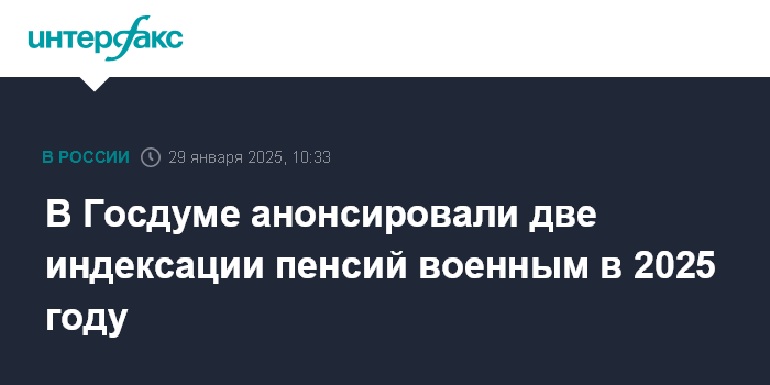 В Госдуме анонсировали две индексации пенсий военным в 2025 году
