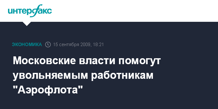 Москва. 15 сентября. INTERFAX.RU - Московские власти окажут помощь увольняемым сотрудникам "Аэрофлота", пообещал во вторник на заседании правительства столицы мэр Юрий Лужков. При этом он отметил, что в ближайшее время "Аэрофлот" планирует уволить 808 человек.