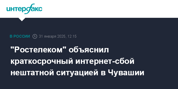 "Ростелеком" объяснил краткосрочный интернет-сбой нештатной ситуацией в Чувашии