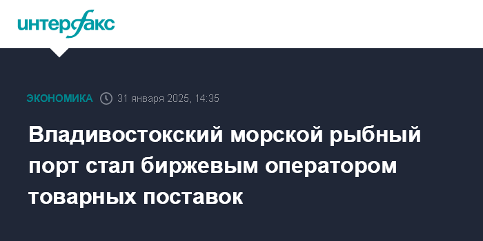 Москва. 31 января. INTERFAX.RU - ОАО "Владивостокский морской рыбный порт" ("Владморрыбпорт", ВРМП, стивидорная компания в порту "Владивосток") получил лицензию Банка России на осуществление функций оператора товарных поставок (ОТП) и в этой роли планирует стать участником биржевых торгов рыбой. Об этом сообщила Санкт-Петербургская международная товарно-сырьевая биржа (СПбМТСБ).